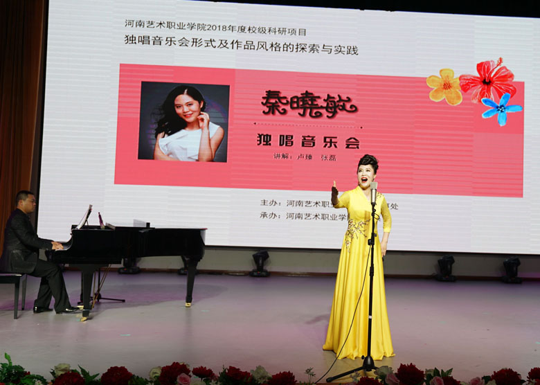 6月14日下午,河南艺术职业学院2018年度校级科研项目《独唱音乐会形式及作品风格的探索与实践——秦晓敏独唱音乐会》在我院小剧场拉开帷幕,一曲曲饱含深情的歌曲,为现场数百名观众带来一场丰富的民族声乐盛宴。著名曲艺表演艺术家、中国曲艺家协会副主席、河南省文联副主席、河南省曲艺家协会主席范军,著名作曲家、河南省音乐家协会主席周虹,河南省音乐家协会秘书长郭志华,河南省曲艺家协会副主席李广宇,河南省文化厅艺术处副处长解冬,河南省教育厅社科处调研员魏军等嘉宾应邀来到音乐会现场观看演出并给予了高度评价。河南艺术职业学院党委书记普锋等领导及师生观看了音乐会。