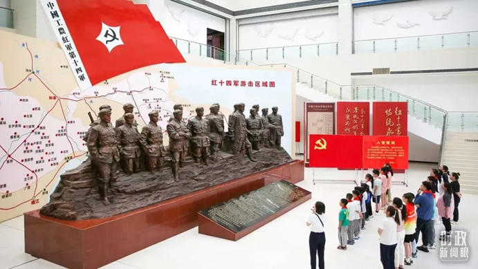 △2024年7月,江苏南通,学生们参加暑期思政课实践活动,参观红十四军纪念馆。(图/视觉中国)