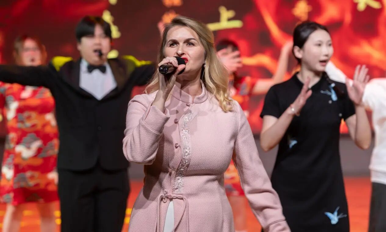 来自白俄罗斯的外籍教师演唱中文歌曲《中国话》,用歌声架起了语言与情感的桥梁。