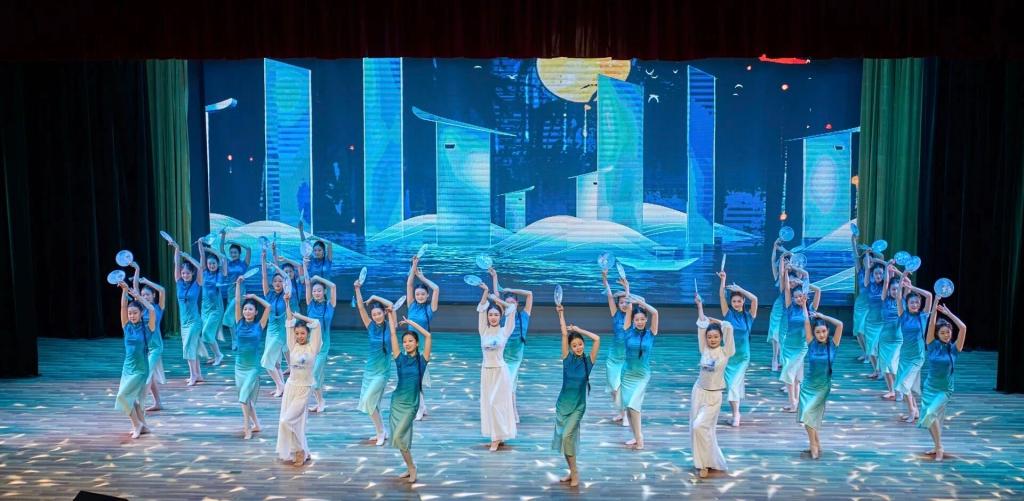 舞蹈学院师生以一曲《青花瓷》,将古典意象与民族舞韵完美融合,仿佛在清雅韵律中徐徐铺开一幅水墨丹青,勾勒出“天青色等烟雨”的唯美意境。