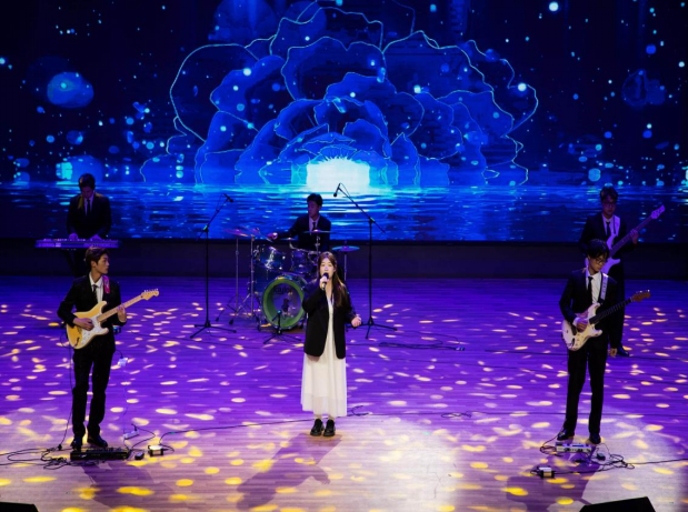 孙慧萍以跨越海峡的乡愁切入,结合歌曲《紫荆花盛开》和朗诵《就是那一只蟋蟀》阐释爱国是永恒的主题,号召学子用画笔、舞蹈等方式向祖国告白。