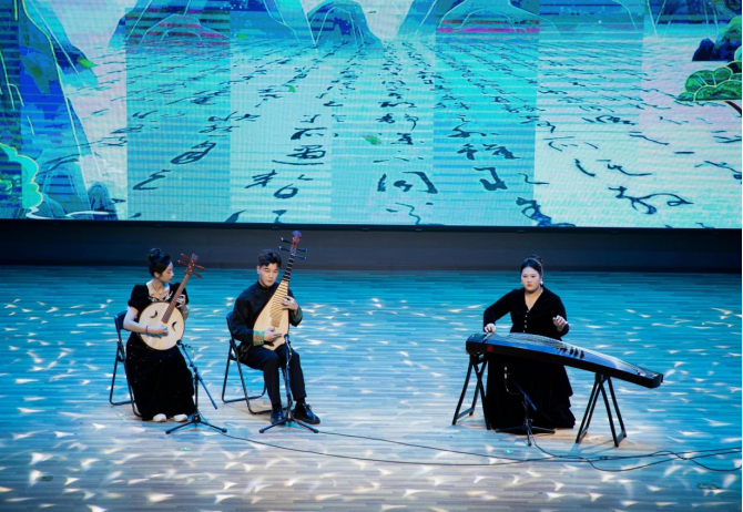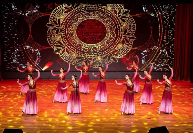齐宁阳以器乐演奏《天山之歌》和舞蹈《旋舞天山》为载体,描绘了中华民族大家庭的团结画卷,鼓励学子用画笔和乐器表达民族团结的动人篇章。