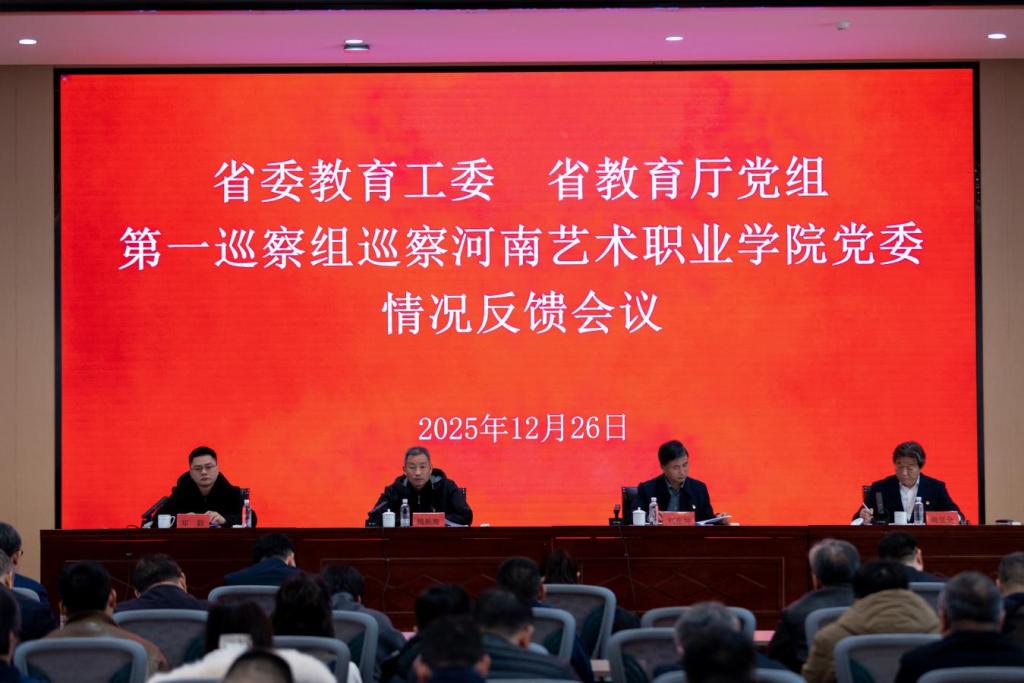 按照省委教育工委、省教育厅党组2025年度巡察工作统一部署,1226午,省委教育工委、省教育厅党组第一巡察组巡察河南艺术职业学院党委情况反馈会议召开。省委教育工委、省教育厅党组巡察办一级调研员揣振海,省委教育工委、省教育厅党组第一巡察组副组长郑毅,省教育厅机关纪委书记刘在坤,省教育厅组织干部处张晶晶出席会议,学校领导班子成员和全体中层干部参加了会议。会议由校党委副书记、校长周宝全主持。