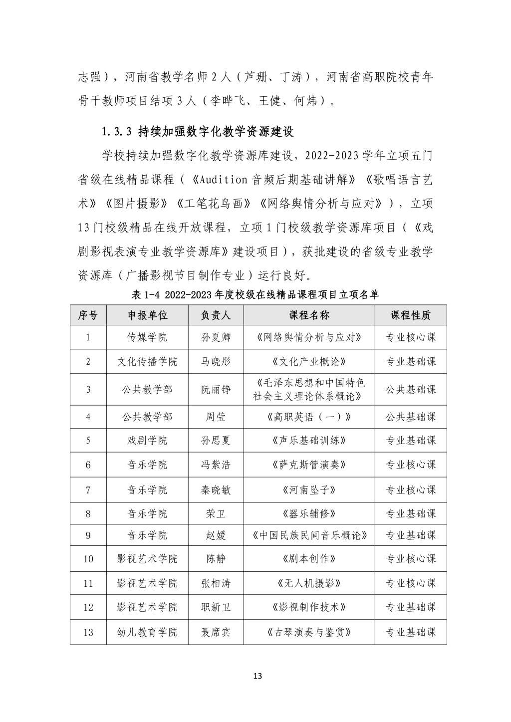 河南艺术职业学院高等职业教育质量报告(2023年度)