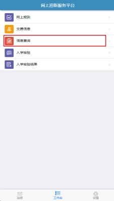 1.在网上迎新服务平台首页,点击“信息查询”,如下图: |