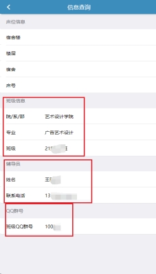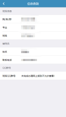2.可以查询到自己的学院、专业、班级信息、辅导员信息、QQ群号等。如下图: |