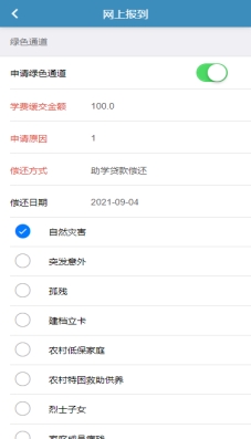 5.助学贷款,若无需办理,直接点击保存;如果需要办理,则按照助学贷款页面中的内容进行填写和上传附件。如下图: |