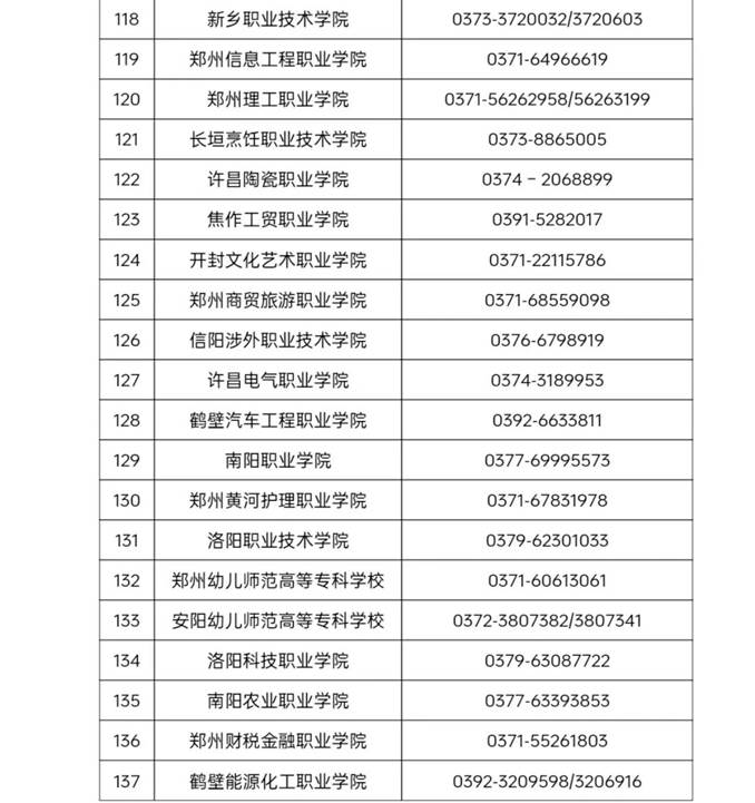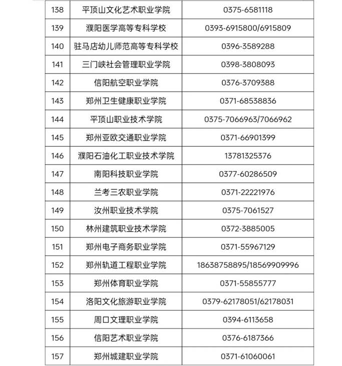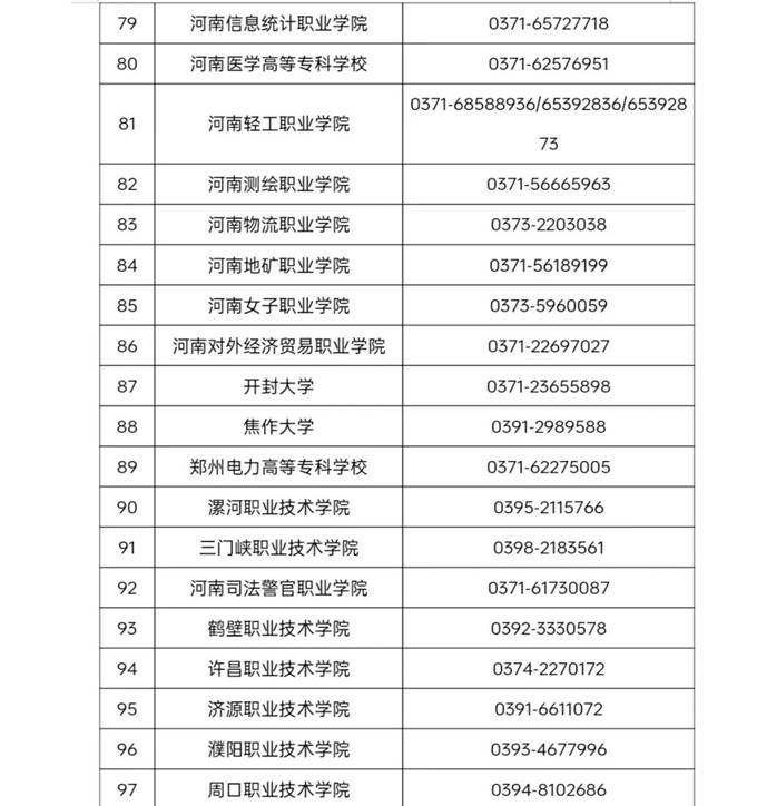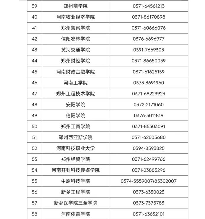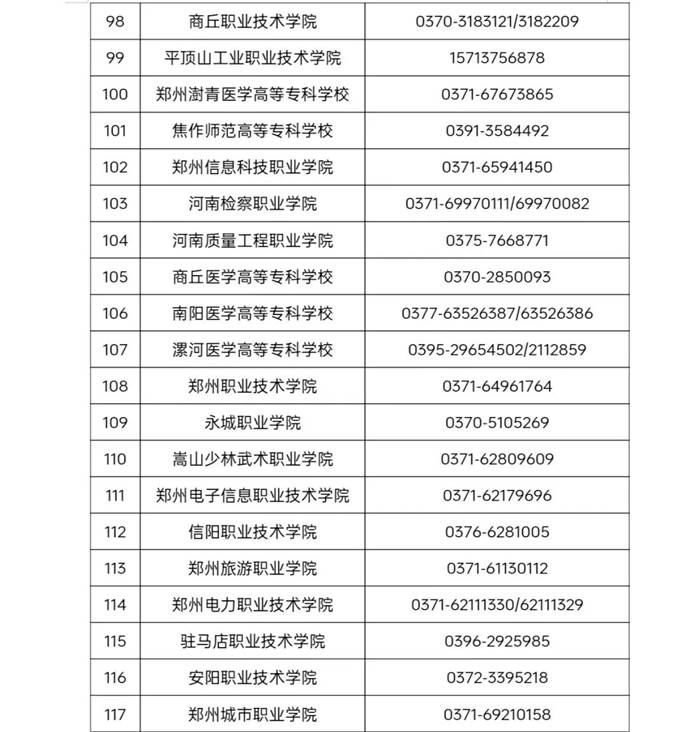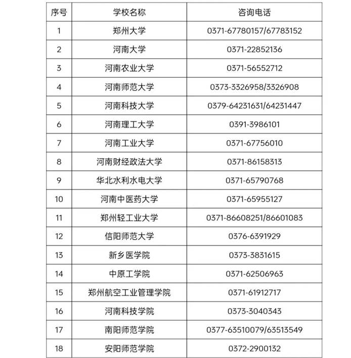河南省普通高等学校学籍学历管理部门联系方式